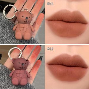 6-Piece Cute Bear Keychain Liquid Lipstick Set 💋 Mist Matte Velvet Finish, Waterproof & Long-Lasting, Moisturizing, Smudge-Proof & Easy to Apply. Perfect gift for beauty lovers, stylish, safe & travel-friendly